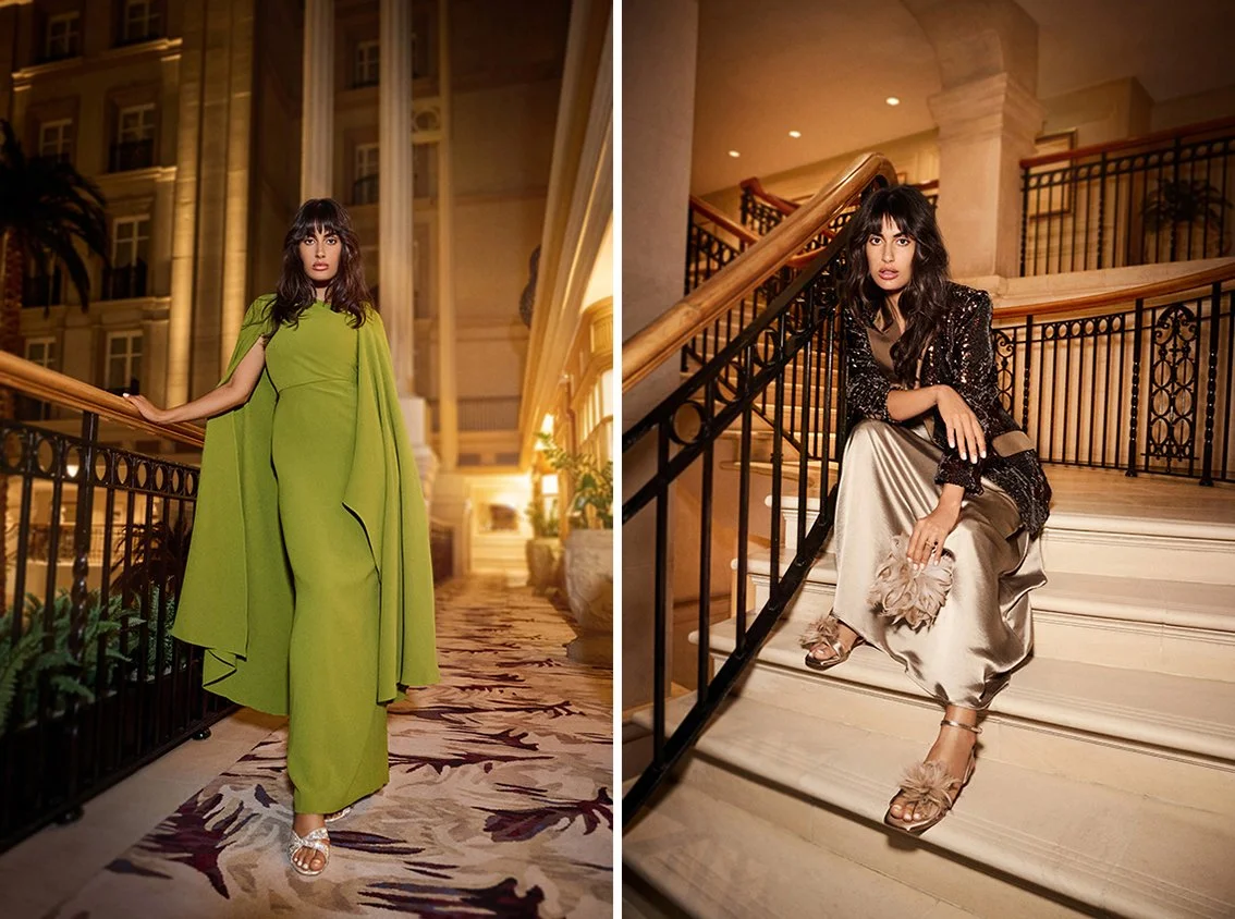 This visual story pairs Dune London’s signature sophistication with opulent surroundings and the modest styling required for the middle east market.